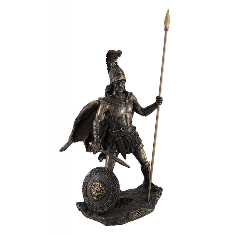 Mars (Arés) soška - římský bůh války. Mars s mečem, kopím a štítem. Antická soška z resinu s bronzovým nátěrem.