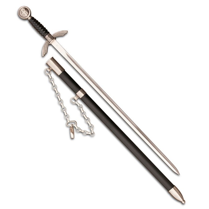 Německý meč Luftwaffe. Ceremoniální meč důstojníků německého letectva za druhé sv. války. Délka 75 cm. Pochva s řetízkem.