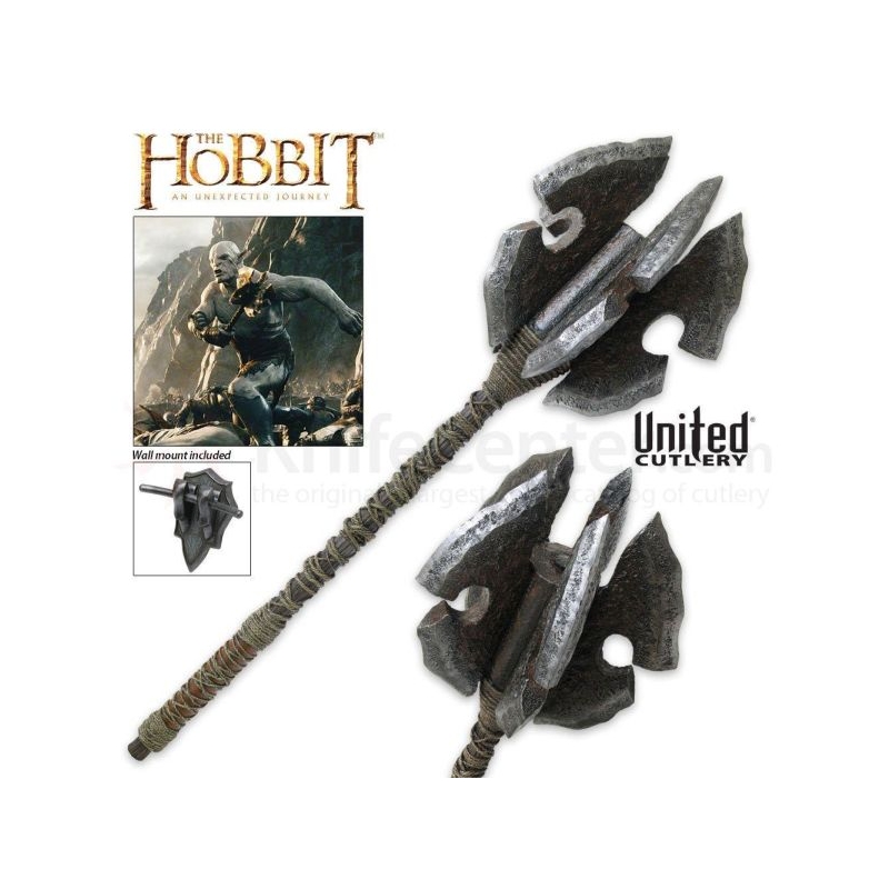 Palcát Azog the Defiler (Znesvětitel)-Hobit. Licencovaná zbraň z filmu Hobbit s certifikátem. Plaketa pro zavěšení. Detailní reprodukce, polyresin, 102 cm.