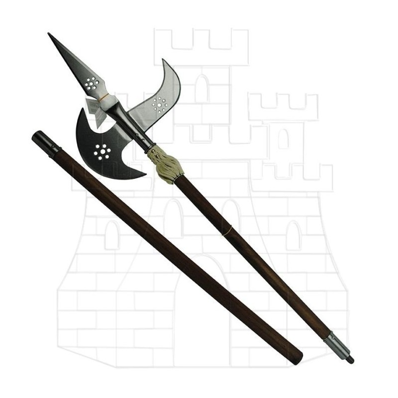 Halapartna Španělská 186 cm. Rozložitelná na 2 části. Dřevo a ocel. Renesanční zbraně.