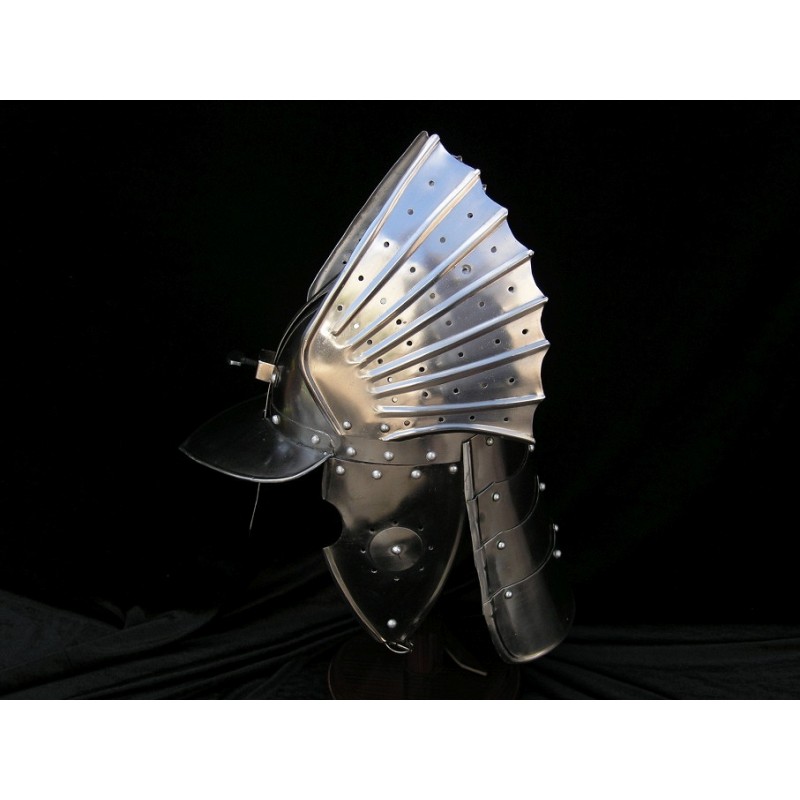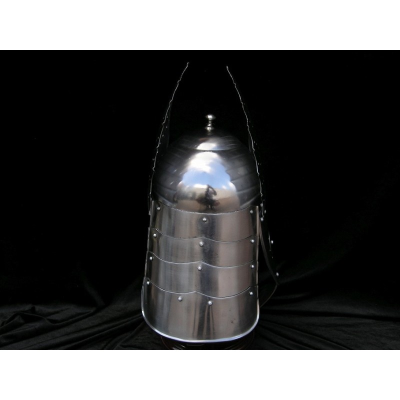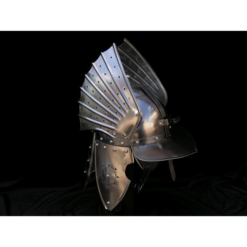 Helma Polský Husar s křídly. Helma tzv. krásných husarů, polské těžké jízdy, kteří byli typičtí křídly. Ocel. Funkční helma.