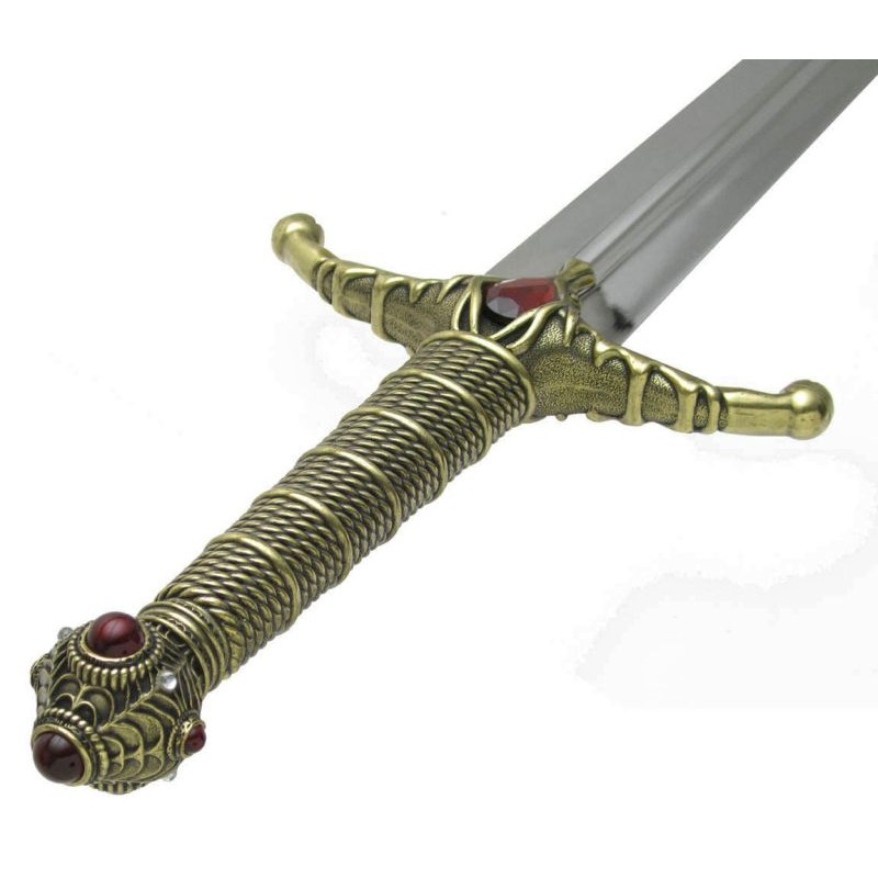 Meč Widow's Wail ze seriálu Hra o trůny. Meč Vdovský pláč, který vlastnil Joffrey Baratheon a pak Jaime Lannister. Plaketa se lvem Lannisterů.
