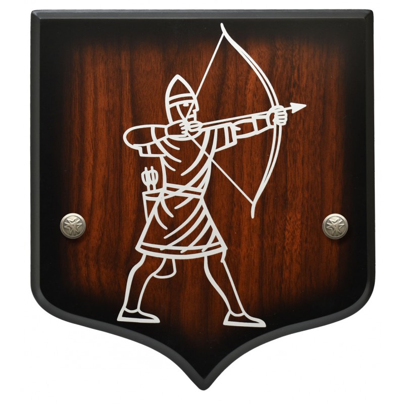 Dřevěný znak domu Tarlyů pro zavěšení na zeď.
