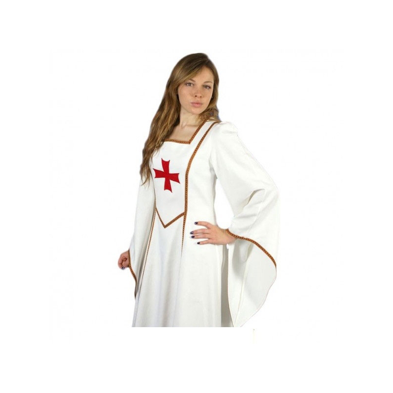 Středověké Šaty Templářka. Kostým templářů pro ženy. Bavlna. Templářský kříž.