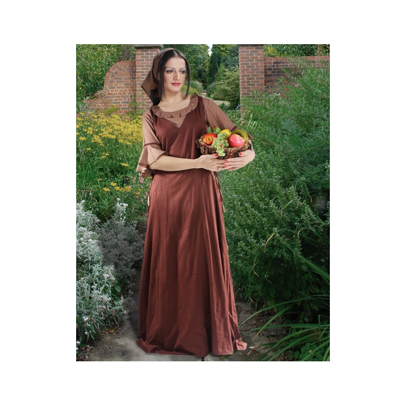Středověké Šaty Amah. Hnědý středověký kostým pro dámy. Historické a fantasy kostýmy. 4 velikosti.