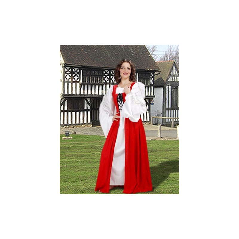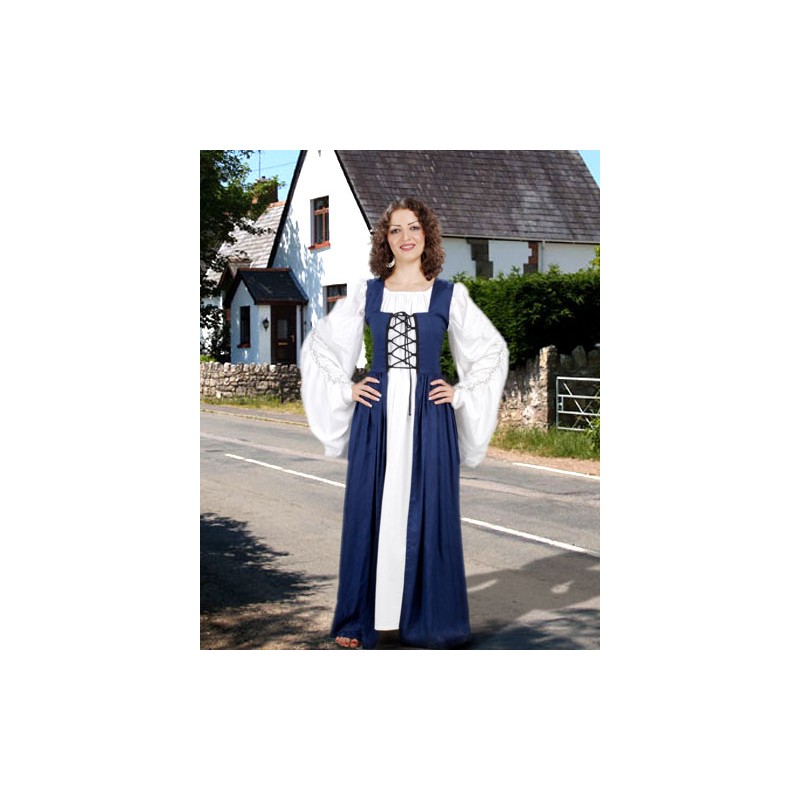 Středověký kostým dostupný v modré, zelené a červené barvě (barvu uveďte do poznámky objednávky).
