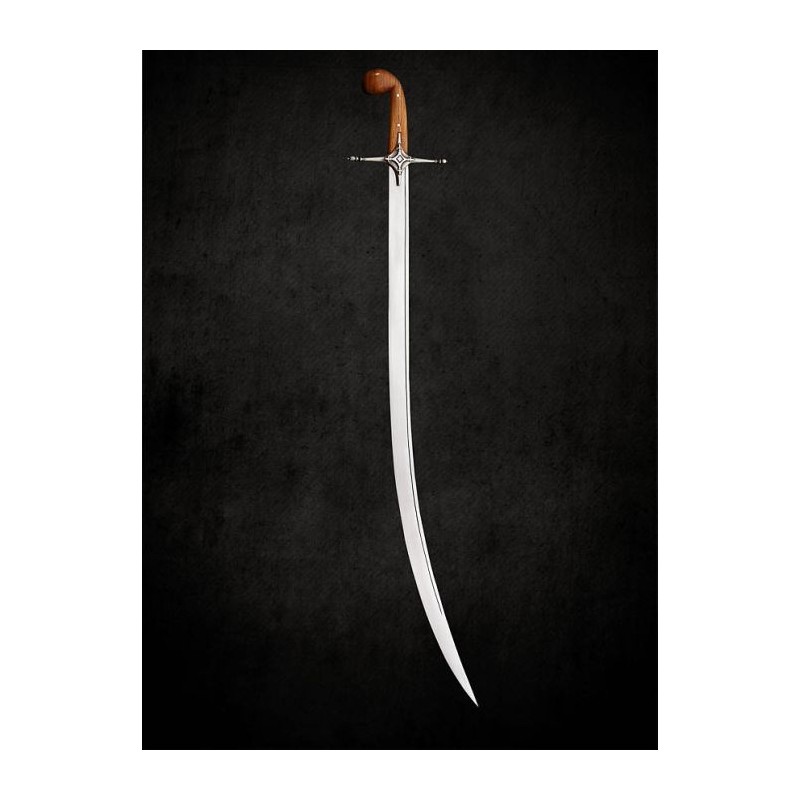 Perská Šavle. Perská šavle (Scimitar, šamšír) s pochvou. Krásná orientální šavle. Kožená pochva s kováním. Dřevěná rukojeť. Délka šavle: 91 cm.