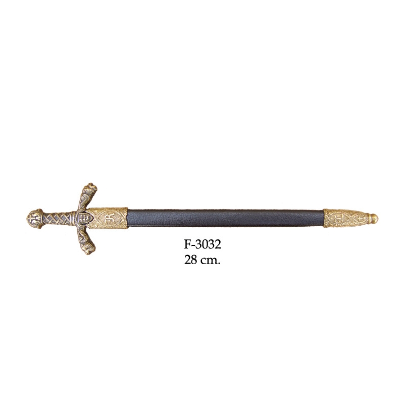 Meč Krále Richarda I-Otvírač Dopisů s pochvou. Miniaturní meč krále Richarda, Lví srdce. Křižácký meč.