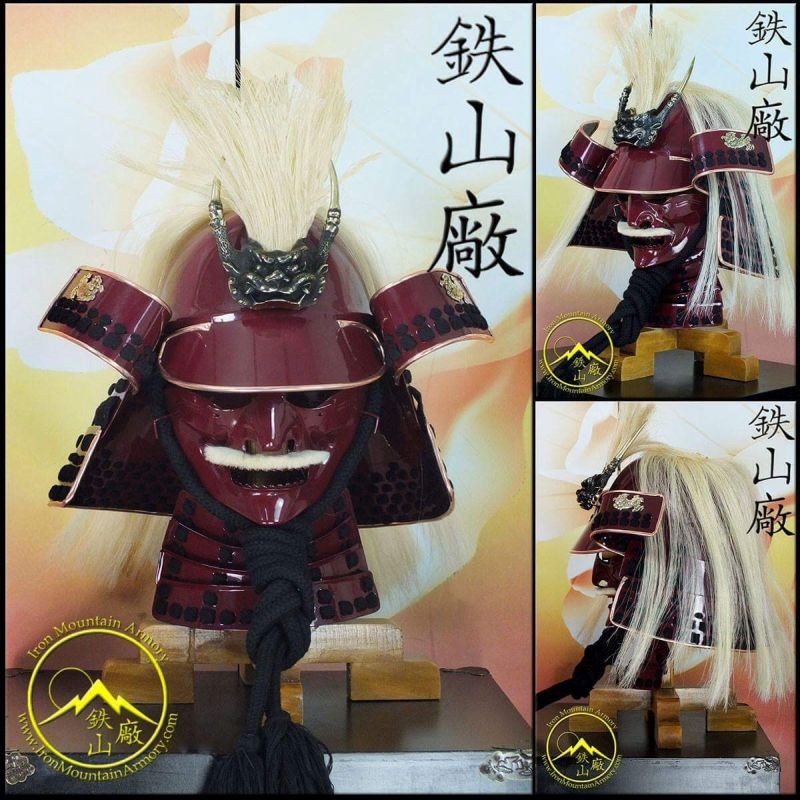 Samurajská Helma Kabuto Takeda Šingen. Součást japonské samurajské zbroje. Nositelná a plně funkční samurajská helma a maska slavného samurajského lorda.