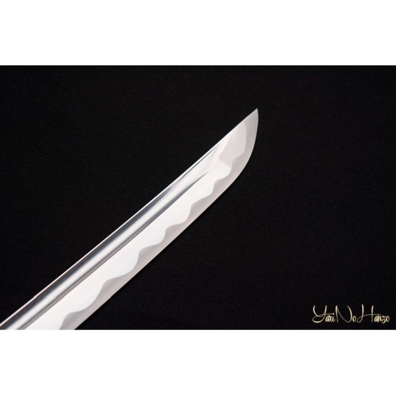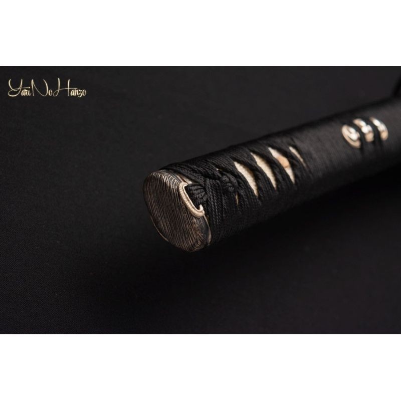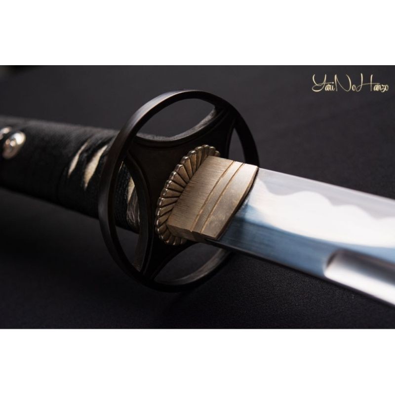 Tato samurajská katana je vyrobena z vysokouhlíkové oceli 1060 a tradičních materiálů jako je rejnočí kůže, japonské dřevo, hedvábí, buvolí roh a bavlna.