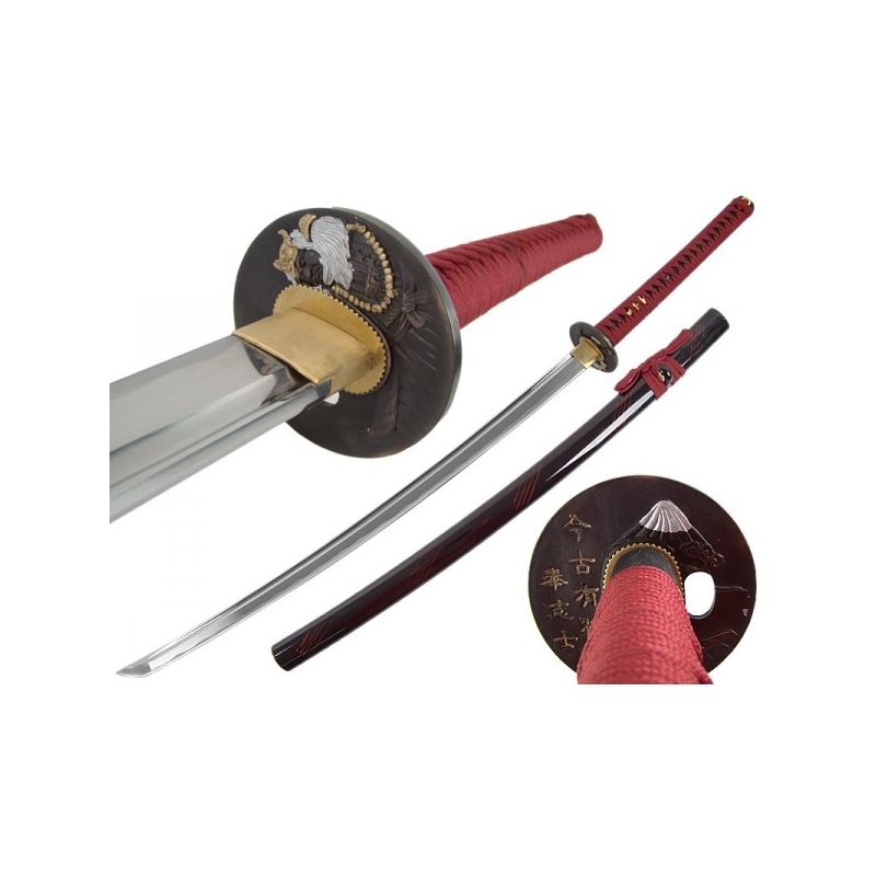 Masahiro Elite Fuji Katana. Levná funkční katana s krvavě rudou rukojetí a motivem Fuji.