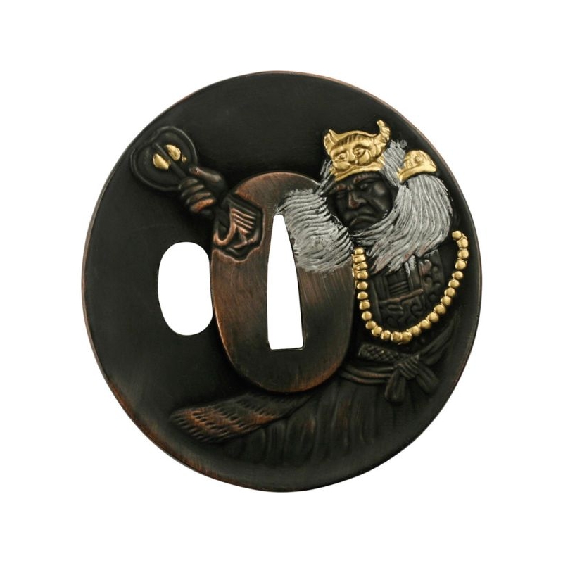 Tsuba displays fuji on one side and a Japanese general on opposite