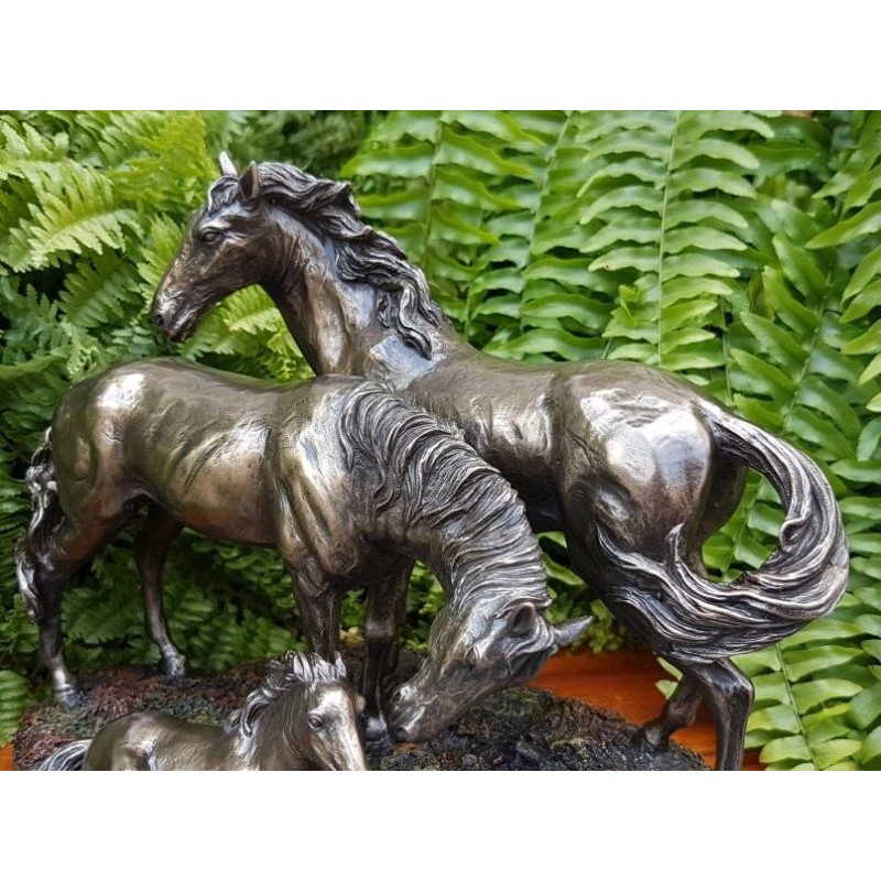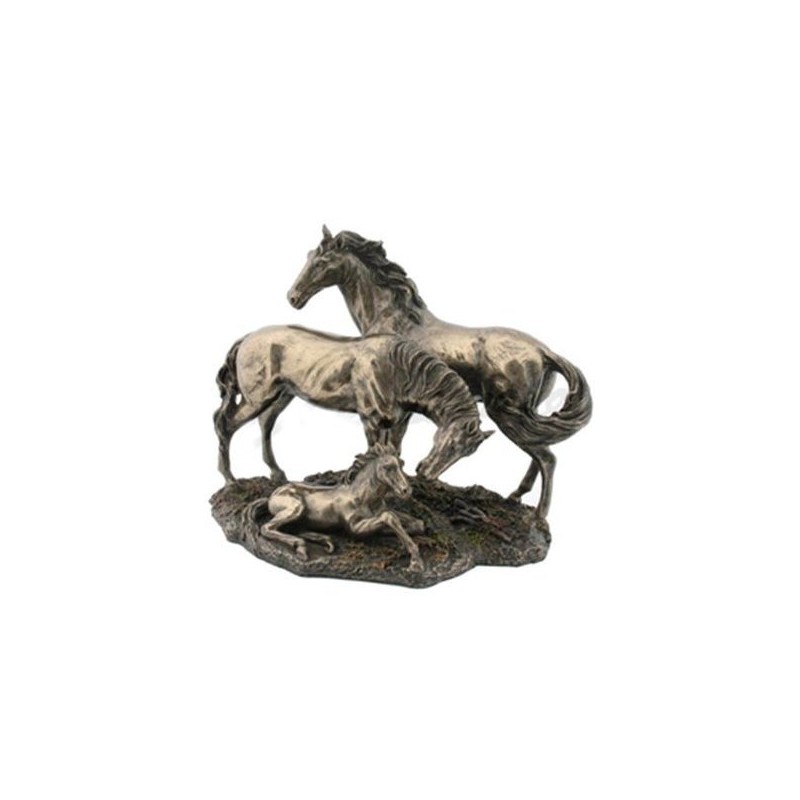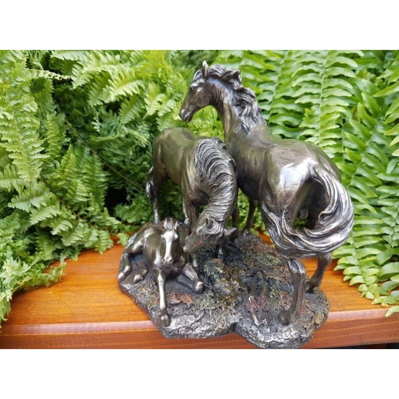 Koňská rodina soška. Sousoší tří koní. Hřebec, kobyla a hříbě. 20 x 15 x 16 cm. 1 kg.