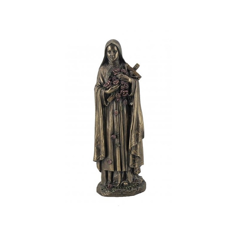 Svatá Terezie Soška. Svatá Terezička (Terezie z Lisieux). Patronka nemocných, letců a pilotů, Francie, Austrálie, pěstitelů růží. Soška 22 cm. Resin s bronzovým povrchem.