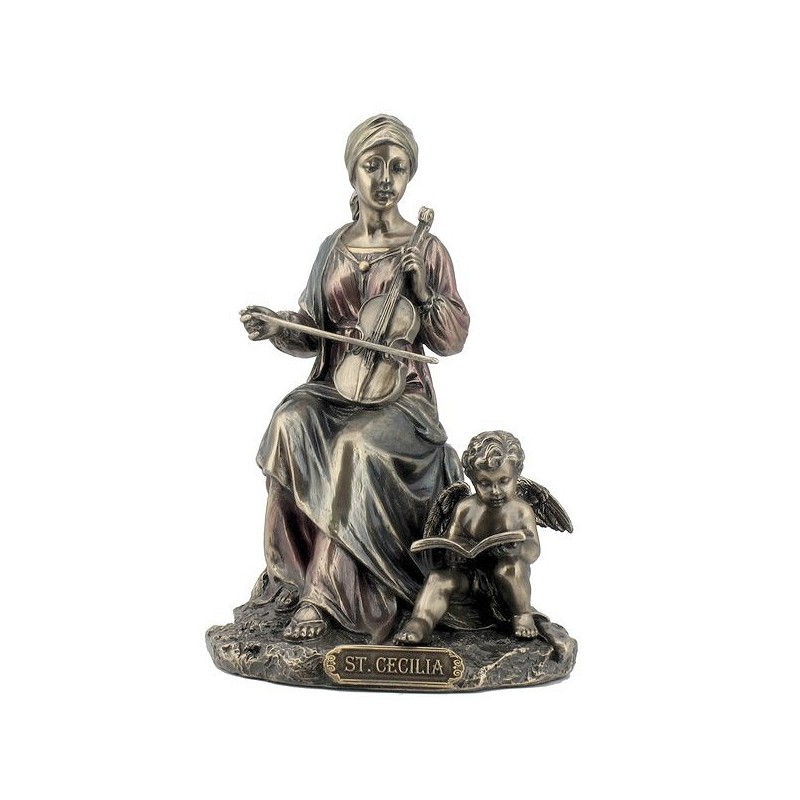 Svatá Cecilie Soška. Svatá Cecilie, mučednice v Římě 2-3stol., patronka hudebníků, zpěváků, básníků a nevidomých. Soška resin. Bronzový povrch.
