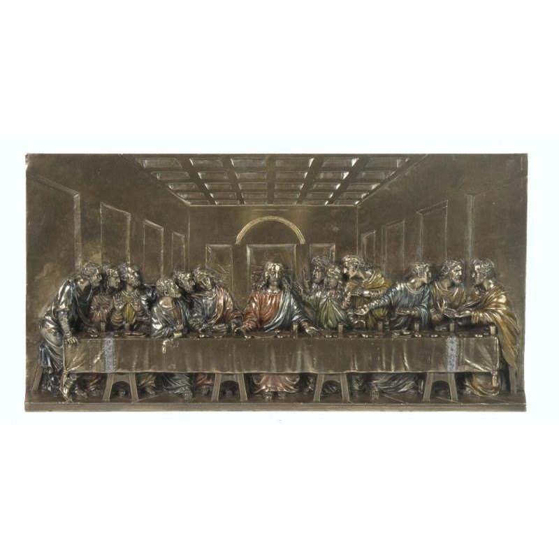 Poslední Večeře Reliéf 36x20x3 cm. Plastický obraz dle fresky, kterou namaloval Leonardo da Vinci. 12 apoštolů a Ježíš. Resin. Bronzový povrch.