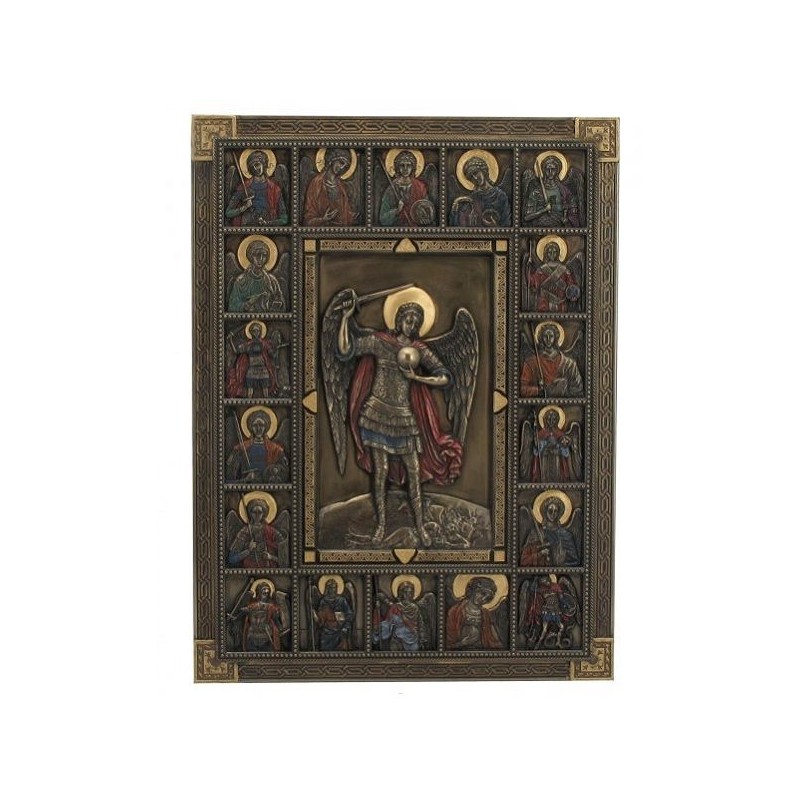 Ikona Archanděl Michael. Reprodukce klasické ikony. 31x23 cm. Resin. Bronzový nátěr.