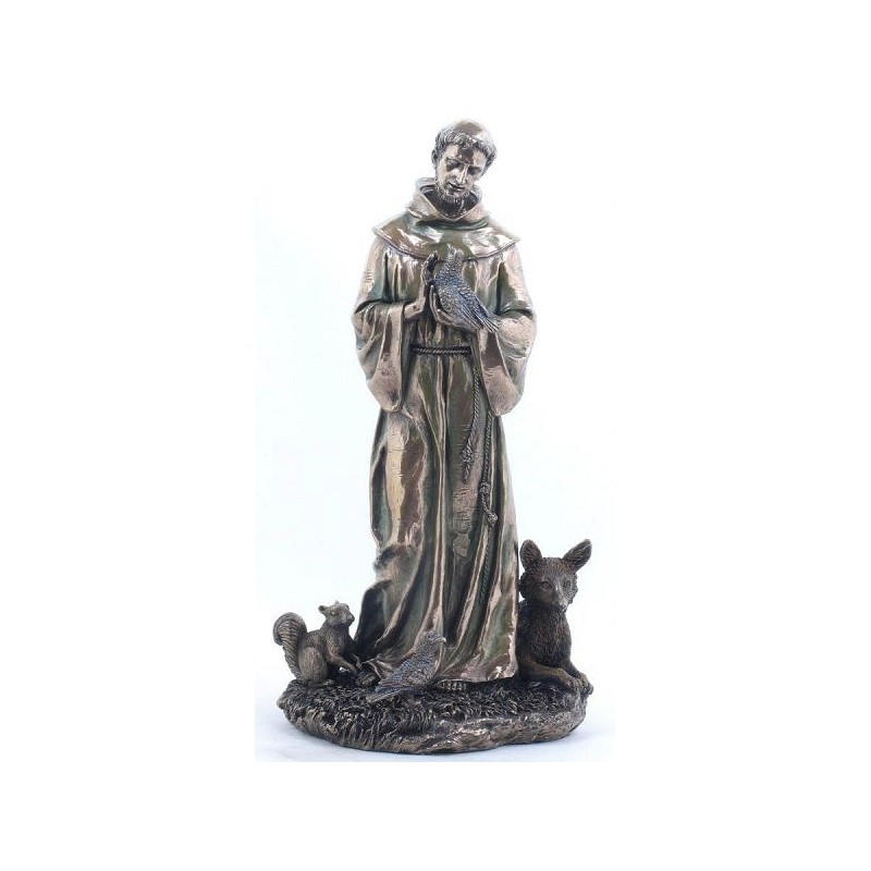 František z Assisi soška. Zakladatel řádu Františkánů. František z Assisi je patronem Itálie, Filipín, ekologie a také vlčat (nejmladších skautů), žvířat a přírody.