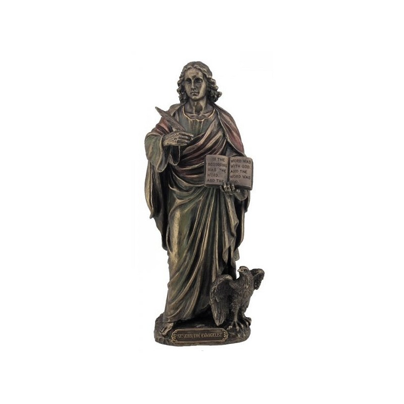 Evangelista Jan Soška. Autor posledního Evangelia pdle Jana (Zjevení sv. Jana, Apokalypsa). Ptron teologů, úředníků, notářů, sochařů, vinařů, spisovatelů. Soška resin. Bronzový povrch.