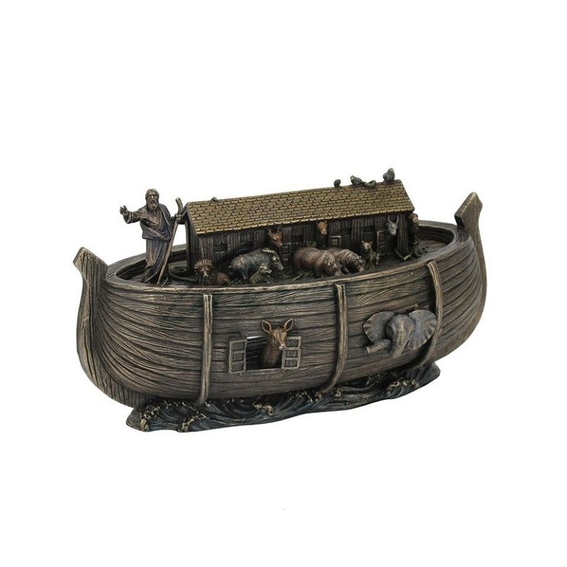 Archa Noemova. Benátská soška nebo spíše model slavné Archy, Starý zákon. Archa, Noe a zvířata. Resin s bronzovým nátěrem.