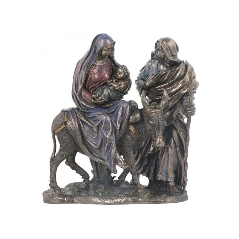 Svatá rodina soška. Panna Marie, Sv. Josef a Ježíš s oslíkem. Soška resin s bronz. nátěrem. 2,6 kg.