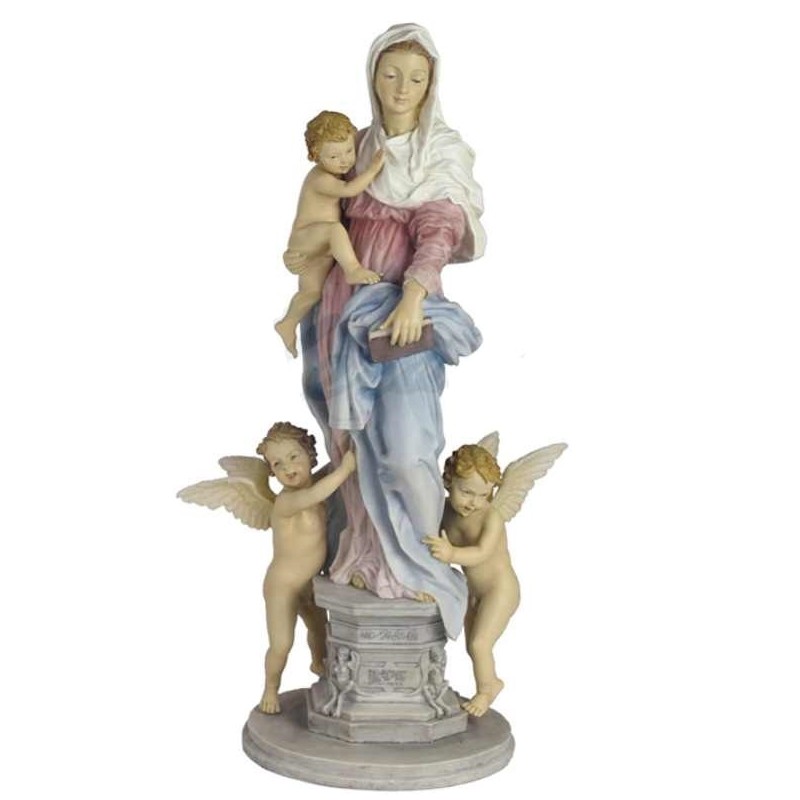 Panna Marie soška barevná s Ježíškem a cherubíny. Ručně malovaný resin.