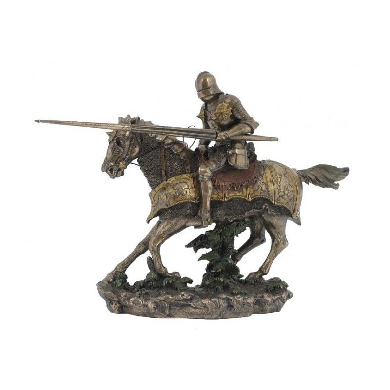 Soška Rytíř na Koni s Kopím 37cm. Štít se lvem. Resin. Bronzový nátěr.