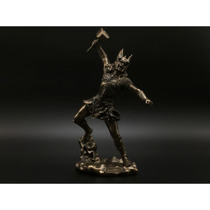 Thor Soška. Soška vikingkého boha Thora s kladivem Mjolnir. Sošky vikingské mytologie. Výška 30 cm. Resin, bronzový povrch. Hmotnost sošky: 1 kg.