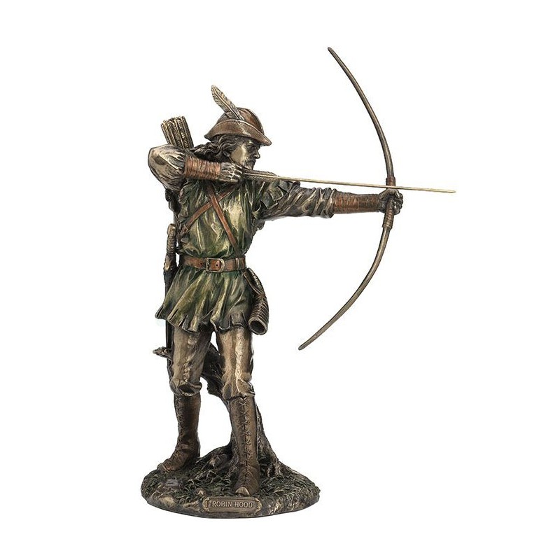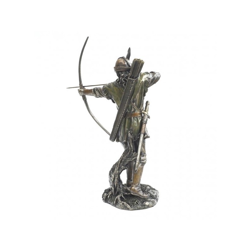 Robin Hood soška. Soška slavného anglického zbojníka z lesa Sherwood bojujícícho za krále Richarda proti Janovi. 31 cm.