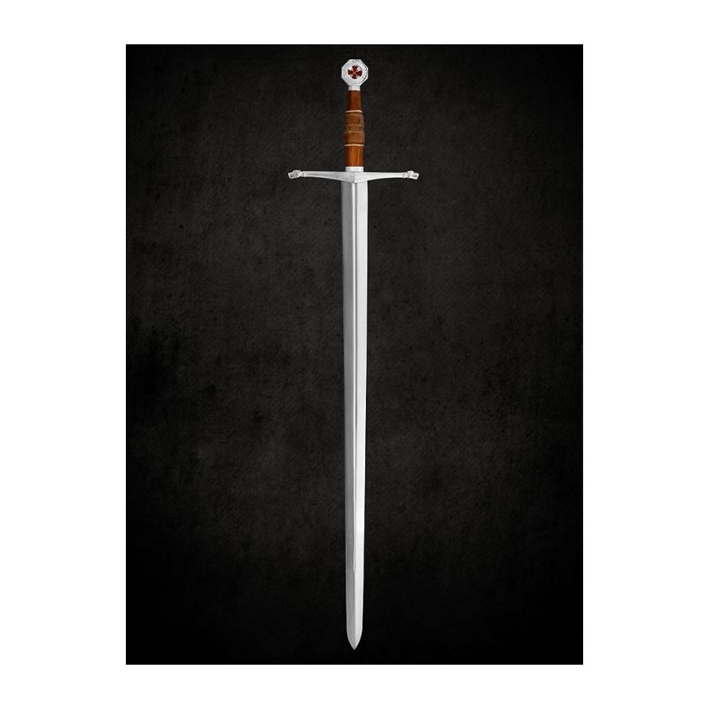 Meč Templářů Bitva u Hattínu. Křižácký jeden a půlruční meč s plaketou. Kříž templářů a latinský nápis. Stříbřená záštita.