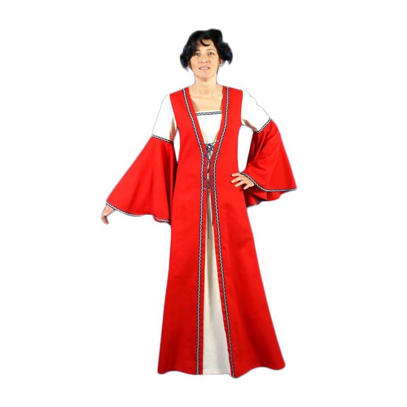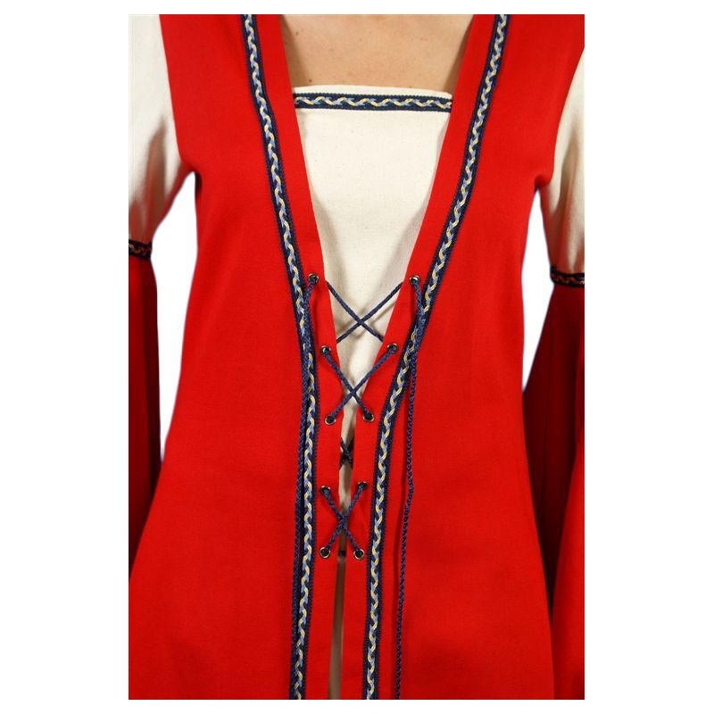 Středověké Šaty Aquila. Červeno bílé šaty pro historické akce a LARP. Bavlna.