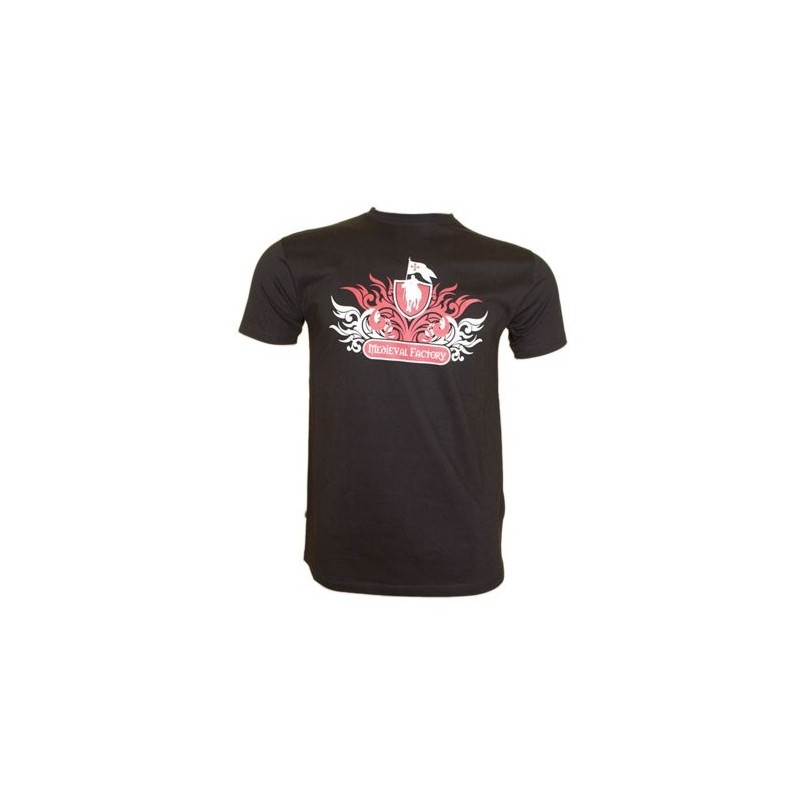 Tričko Středověk Černé. Rytíř na koni s vlajkou.